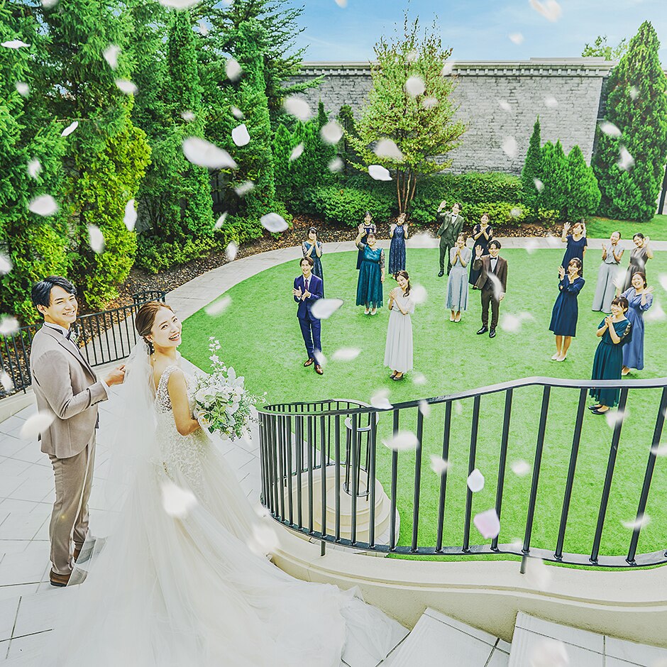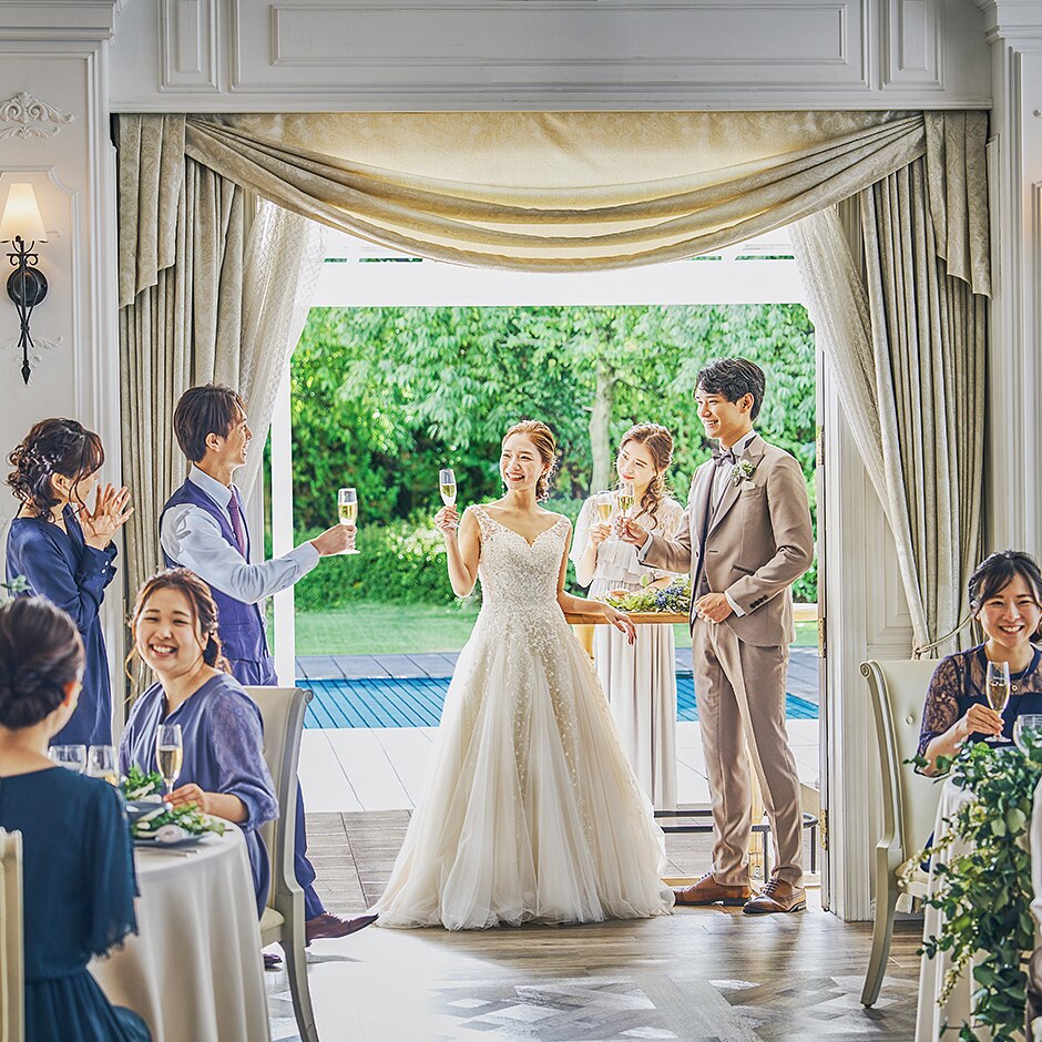 1日1組だから実現する自由な時間設定が魅力。通常は挙式時に初めてゲストと対面することが多い中、ここでは会場に到着したゲストを新郎新婦が直接出迎えることも可能!ふたりで仲良くゲストとの楽しい時間を始めよう