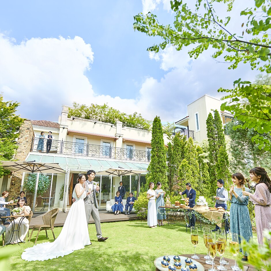 ございます。ご結婚式当日は、邸宅貸切でお使いいただきますのでガーデンも自由にご利用いただけます。ガーデン挙式以外にも、デザートブッフェやカジュアルにお外での乾杯演出、フォトスポット等行えます。