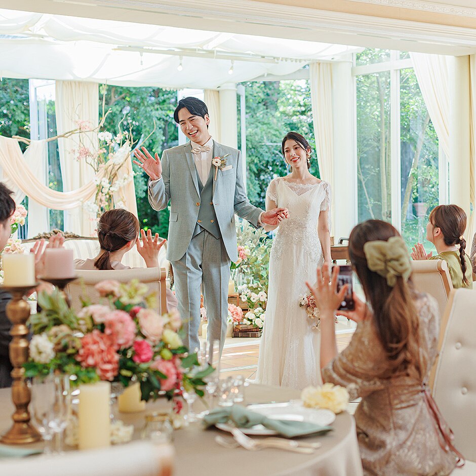 アットホームで、ゲストと距離が近い少人数婚にもオススメの式場でした!駅からもアクセスが近い ところも良いと思いました。打ち合わせでは、 携帯にいれるアプリからチャットのように プランナーさんと連絡がとれるので打ち合わせの 回数も少なく家で準備しながら、聞きたいことが ある時はすぐにチャットで連絡できたり確認できるのもすごく良かったです!引き出物やBGMなども、そこから選べることができるので仕事中の休憩の合間にできるのもすごく準備期間は助かりました! 挙式は見学の際に、チャペルにステンドグラスが 光にあたって映るのが素敵でこの式場で歩きたいと思い決めました。当日は生歌やオルガン演奏と牧師さんもいて、ザ結婚式!って雰囲気に圧倒されて 素敵な挙式になりました。 披露宴は、ゲストとの距離も近くてムービーも 見やすくアットホームな披露宴ができました。 料理も食べる時間がないのが悲しいので、 式後にゆっくりと食べれる式場であることも 嬉しかったです。スイーツビュッフェもゲストが 喜んでくれていたのでオススメです! あとは、スイーツビュッフェの時に もう少しカーテンが開いてみんなの姿が 見えると、より良いかなと思いました。 小物などの持ち込み料もかからないので、 そこで節約できたりしたのも良かったです。 あと、披露宴最後でのエンドロールムービーは 私達が準備している間のゲストの待機してる姿なども見れたり新郎の歩いてる姿も見れたりするので みんな感動していたので本当にオススメで つけてよかったって思いました! カメラマンさんも、ゲストのグループごとに 写真をたくさん撮ってくれたのも良かったです! ヘアメイクさんも、理想の髪型とメイクにしてくださり当日も近くで支えてくださりました! ありがとうございました!! ゲストは料理も美味しかったよ!と 喜んでくれました。