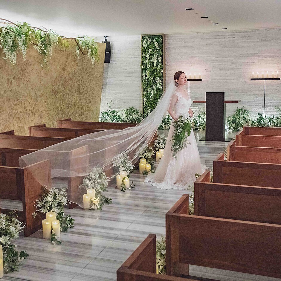 大理石造りの落ち着いたチャペルでゲストとの距離が近い親密なセレモニーを