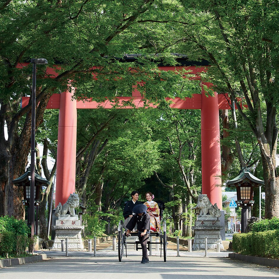 家から近いので打ち合わせに参加しやすかったです。(ここが地味に大事) 遠方のゲストが新幹線でアクセスしやすいため。 神社が近くにあり、参道前で写真を撮ることができる。 人力車がある。