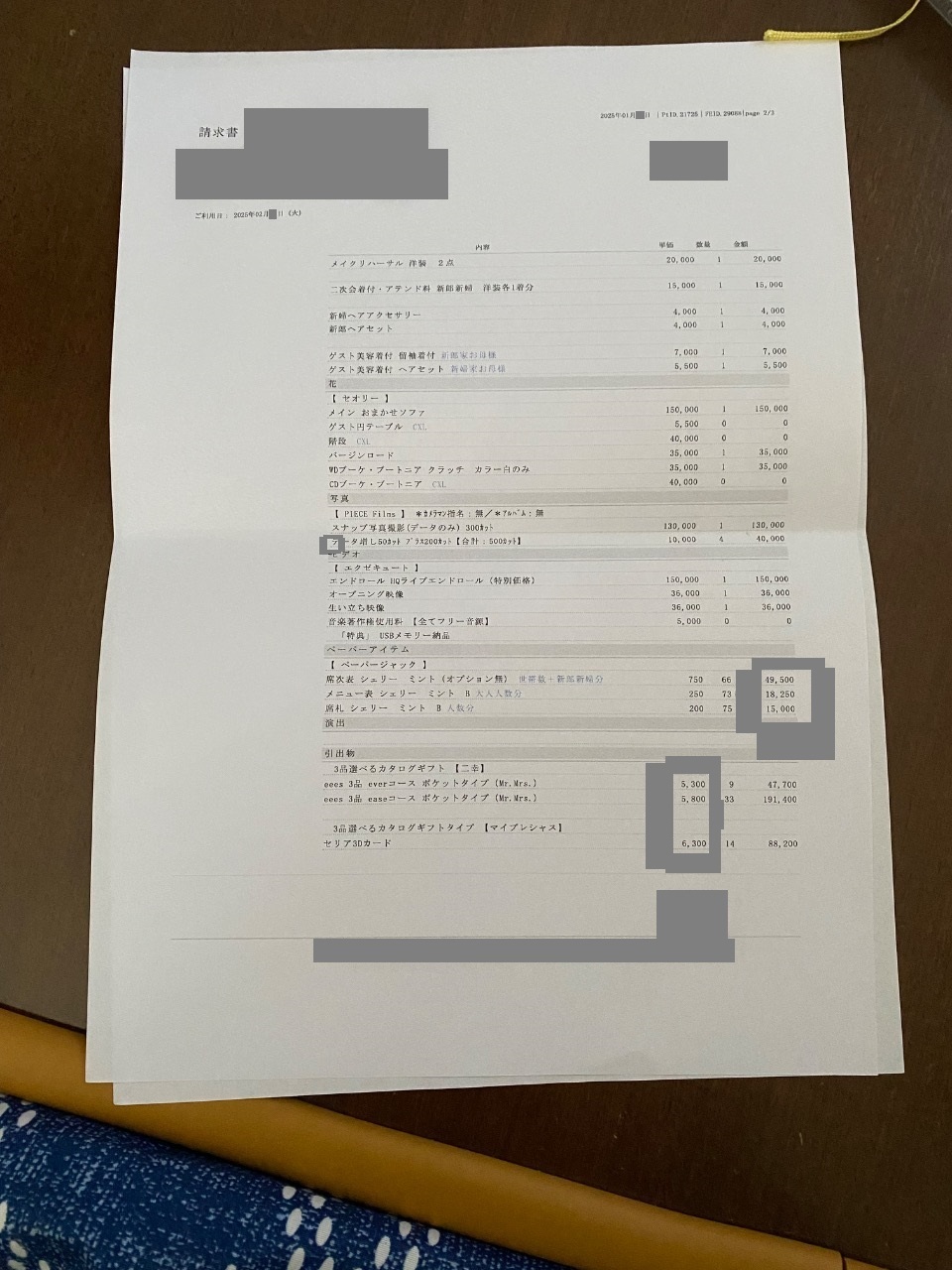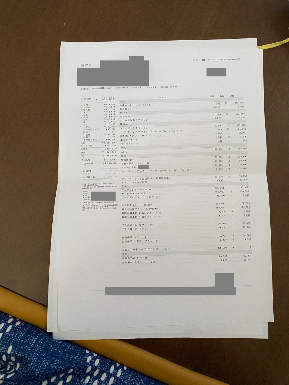 ※投稿された金額情報は、日取り、申込みのタイミングや会場の空き状況等によって異なるため、最終費用明細の項目や金額をもとにした、式場との価格交渉や追加サービス等の要望はご遠慮ください。