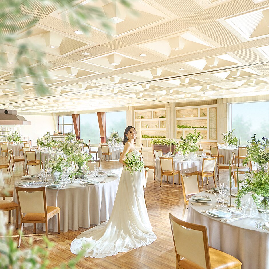 優雅なフェミニンスタイルにもマッチする会場。温かな雰囲気の中で、新たな人生の始まりを祝う時間を楽しめる。