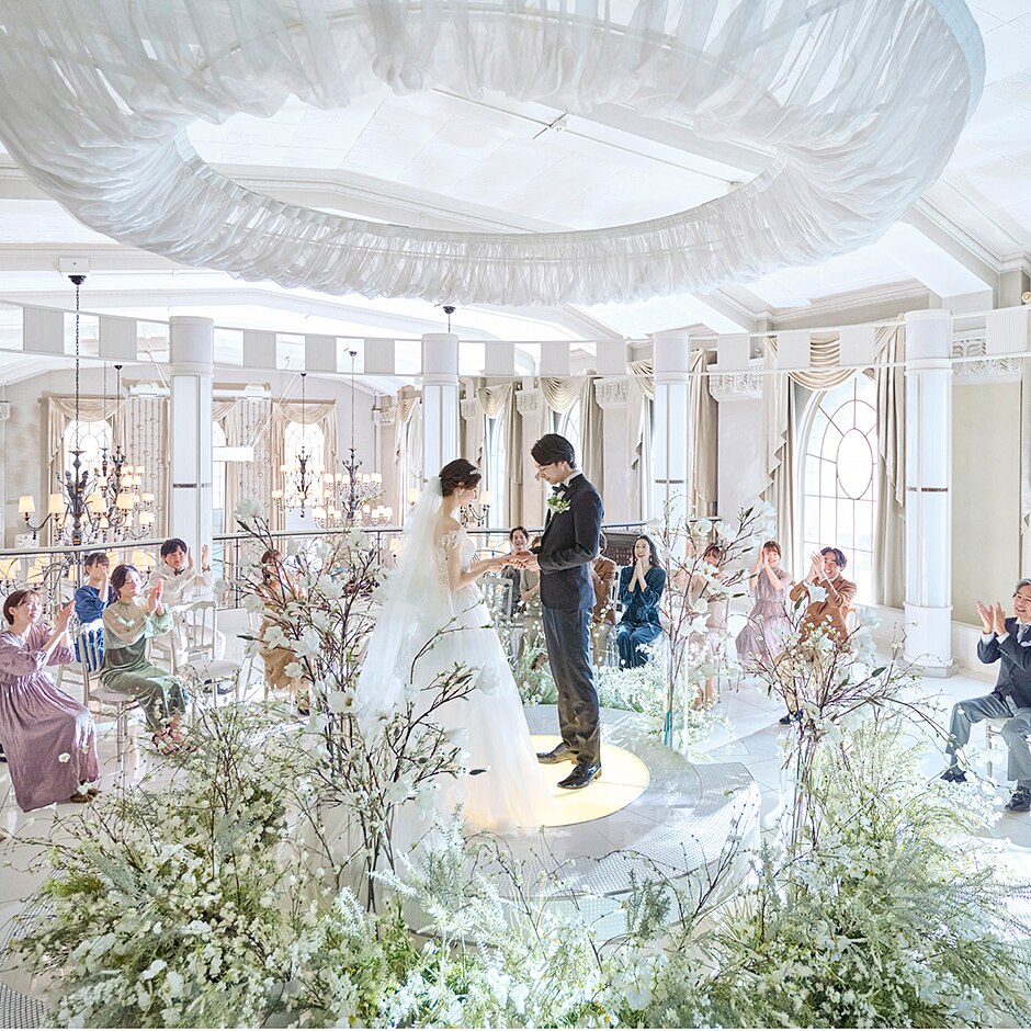 歴史が創り上げた財産と、新しい創造の出会いから生まれた場所。誓いの空間は、ゲストが向かい合って座る円形チャペルが特徴。互いの表情が見えることで誰かの涙に思わず涙するような感動の連鎖が広がっていく…。