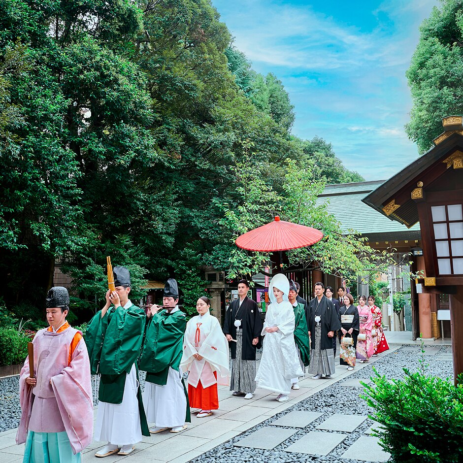 伝統が息づく神前結婚式創始の神社。縁結びの神様に見守られ、厳かで温かな和の婚儀を