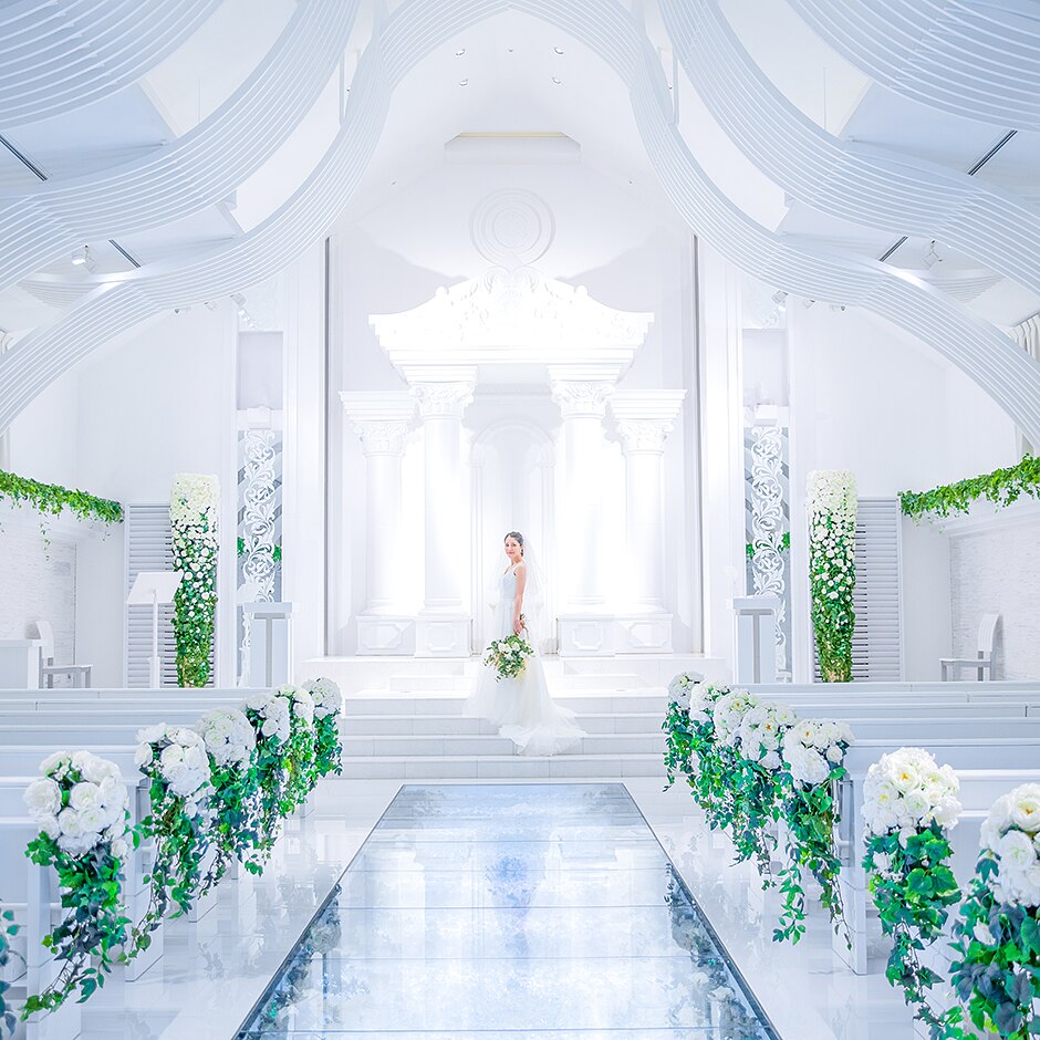 ガラス張りのバージンロードが長く美しい純白のチャペル♪ -