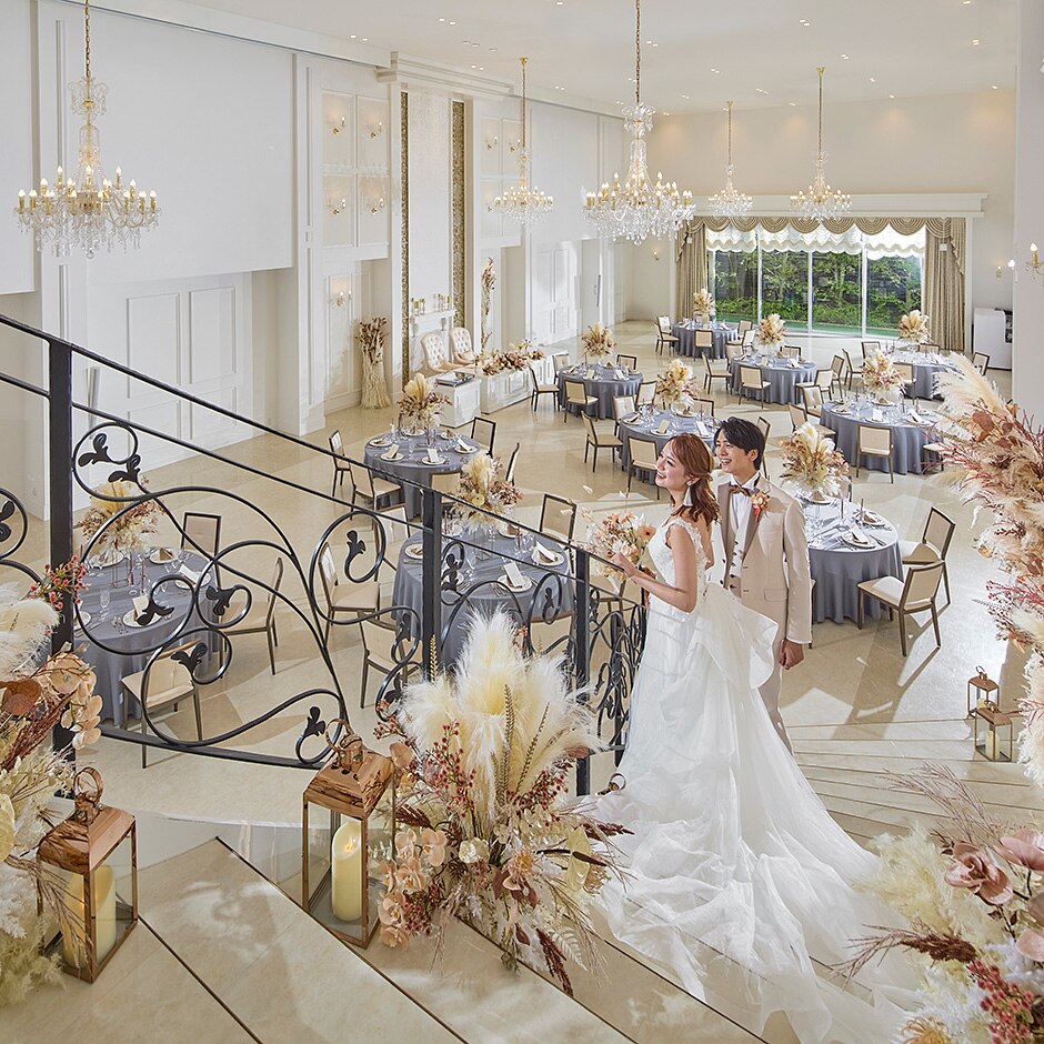 幅が広くゆったりとした大階段なので、たくさんのゲストから祝福をうけることができる
