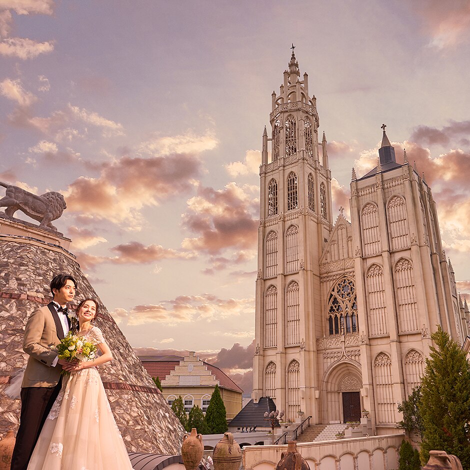 夕焼けの景色×大聖堂のロケーションもバツグン