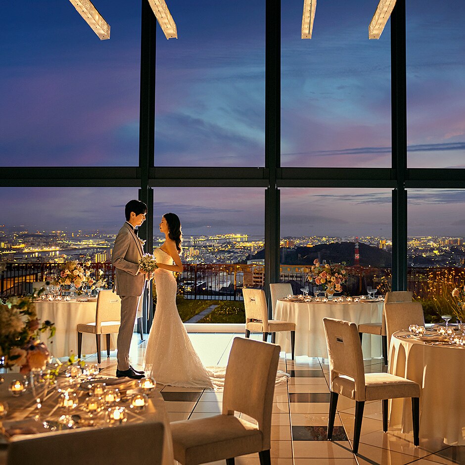 標高200m、市内中心部からほど近い高台にある舞台。ふたりのために用意された計算し尽くされた空間は、どこを見回しても日常からかけ離れた美しい世界が広がり、結婚式にほしかったのはこの特別感だと気づくはず