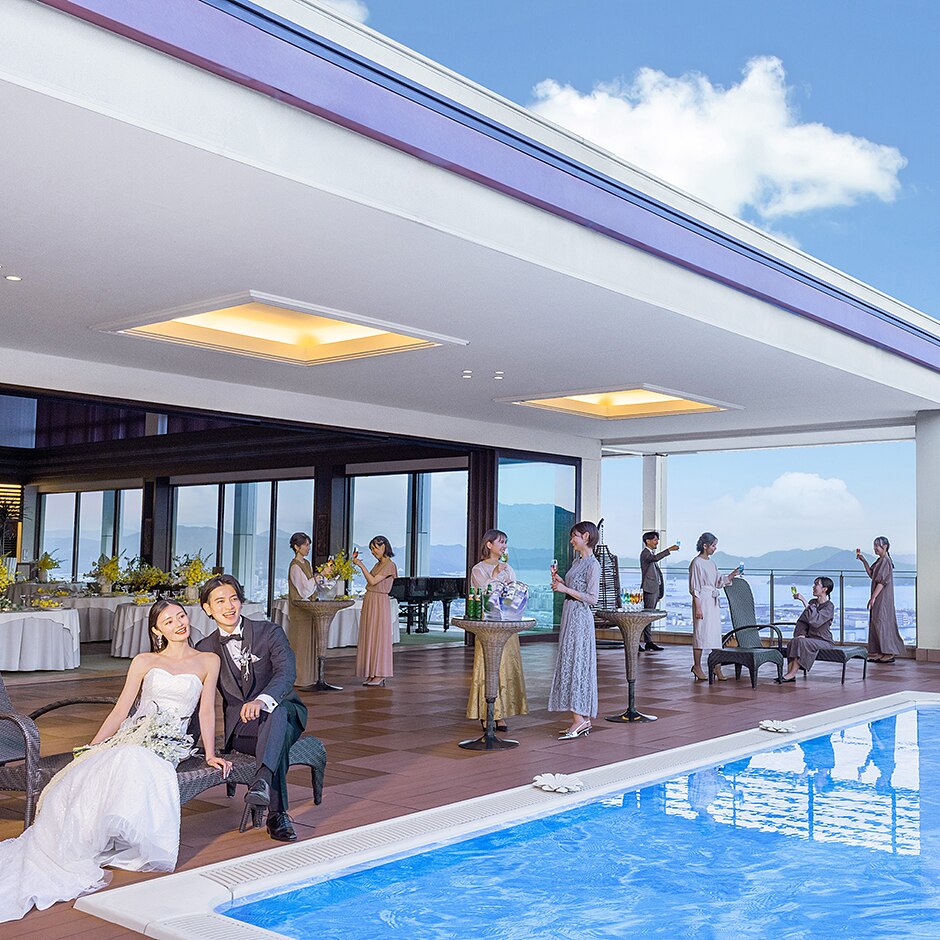 全3会場にプライベートガーデンとプールを併設しております。コンセプトが全く異なる3つのパーティ会場では、どの席からもお庭や景色を望むことができます。