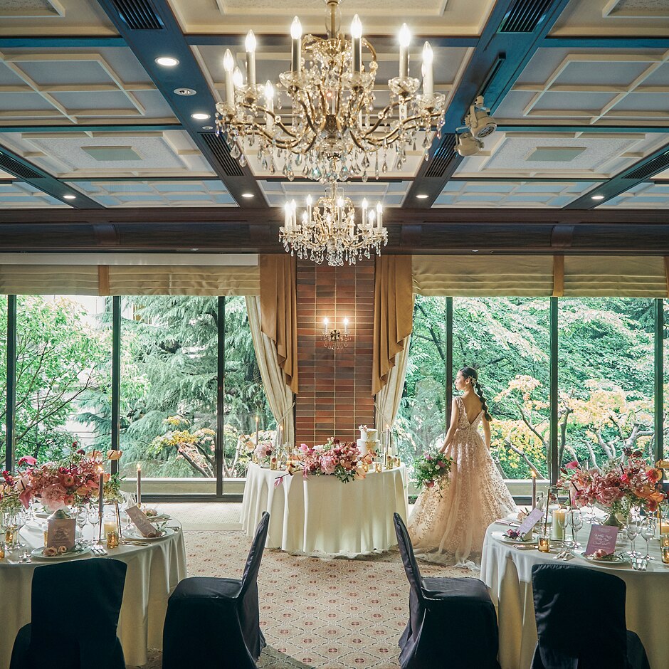 大きな窓の先に広大なガーデンが広がり、たっぷりと射し込む自然光と色鮮やかな緑が、ふたりの特別な一日に彩りを添える。優雅で温かなパーティを叶えて