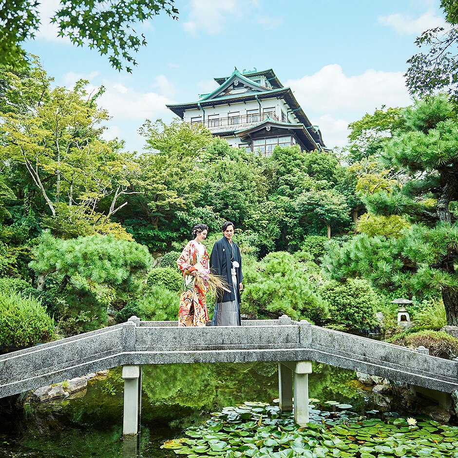 美しい景色に包まれる「非日常」を味わえ、リゾート感のある結婚式を叶えることができる場所。敷地内には四季折々の草木が彩る庭園もあり、和装やドレスでの撮影も人気。都会の喧騒から離れ、心に残る1日を過ごそう