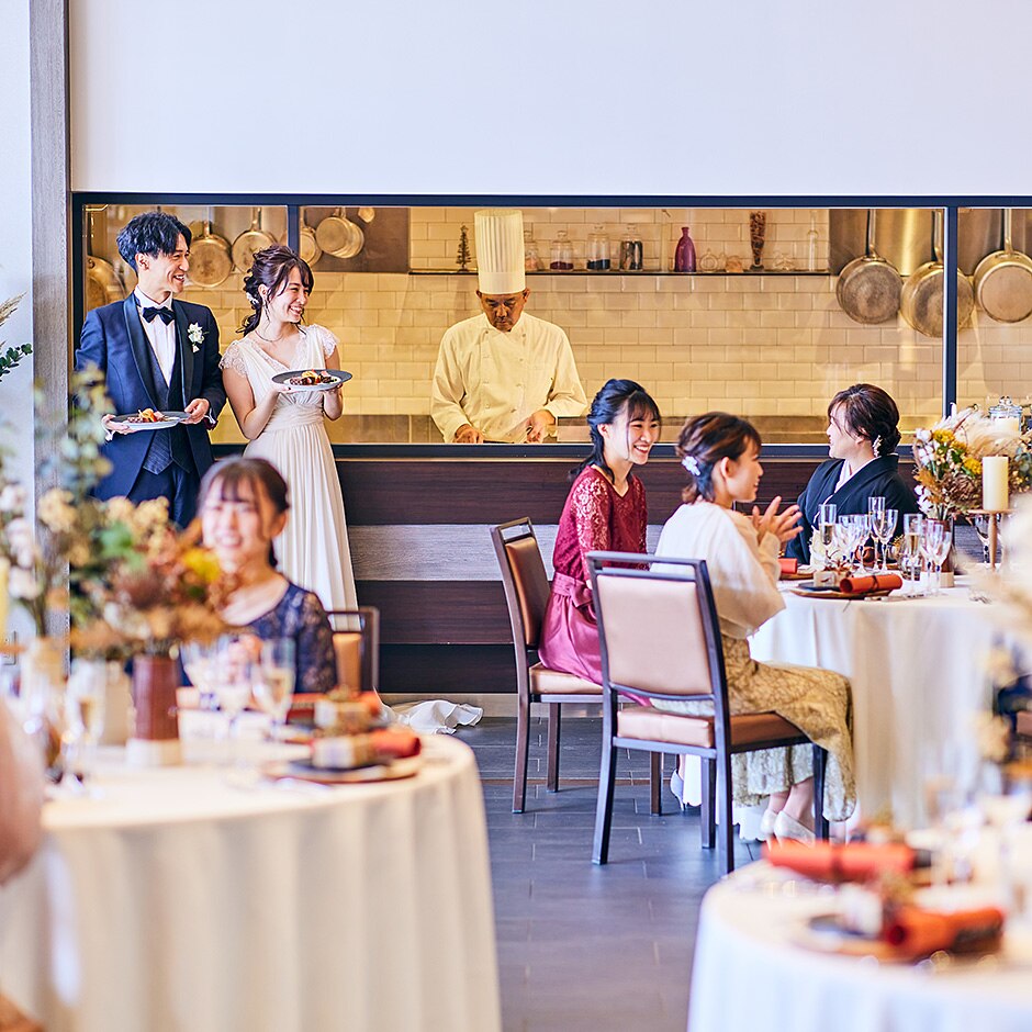 1日1組限定の貸切一軒家では、挙式からパーティまでゲストに合わせたスケジュールやふたりらしい自由なおもてなしを実現。料理はゲスト自身が好きなメニューを選択できるチョイススタイル!1日かけて大切な人に感謝を伝えるアットホームな時間を叶えよう