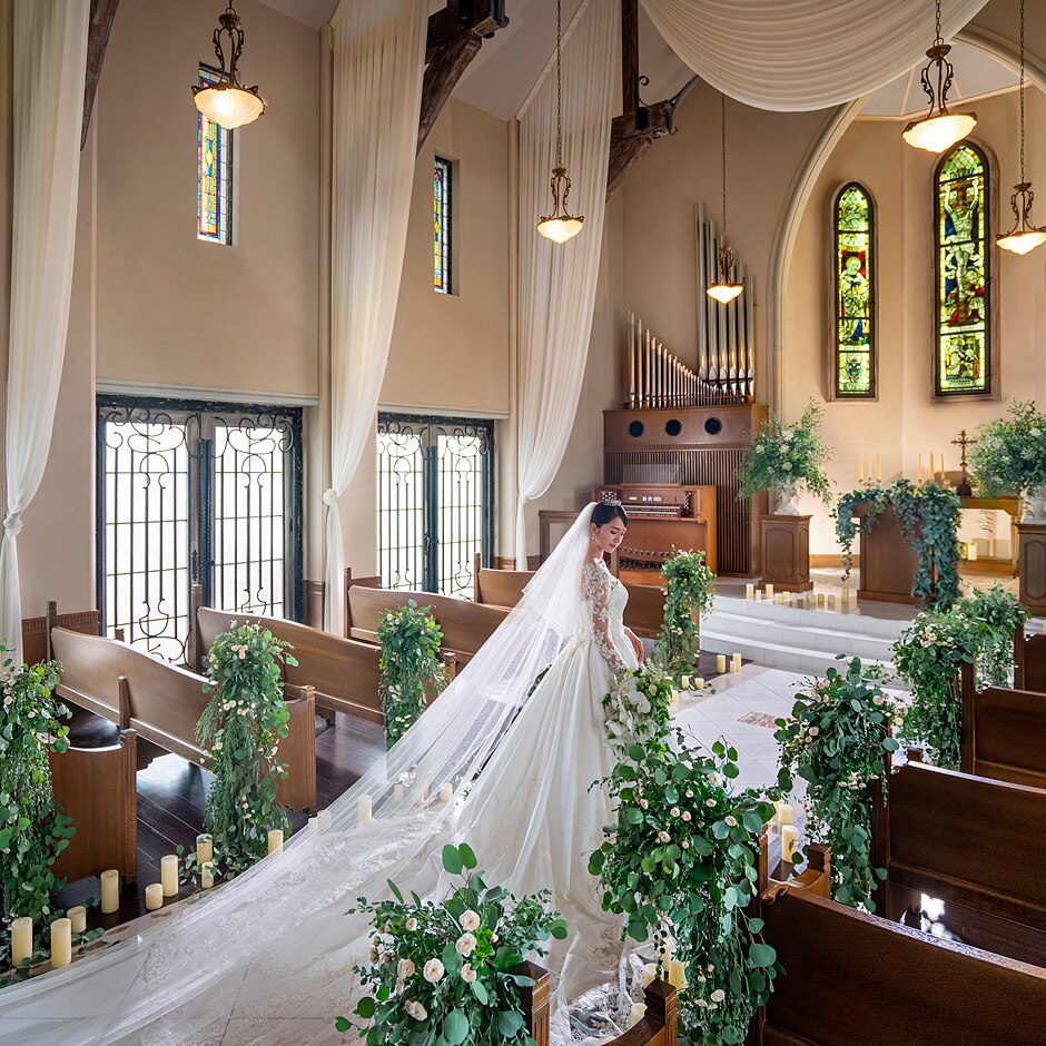 煌びやかなステンドグラスや音色が美しいパイプオルガンを一目見て、『ここにしたい!』と決める花嫁も多い。大聖堂の圧巻のスケールと荘厳さは、子どもの頃から憧れていた理想の結婚式が叶う舞台となる。