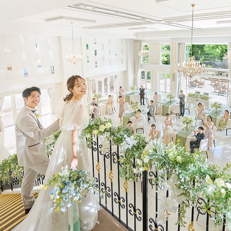 20名程度のファミリー婚から100名以上の結婚式まで、シーンに合わせたスタイルが叶う同館。開放的なガーデンや大階段など設備も充実!大型LEDビジョンも新たに導入され、パーティを盛り上げるダイナミックな映像演出が可能に。ぜひフェアでその感動を体感して