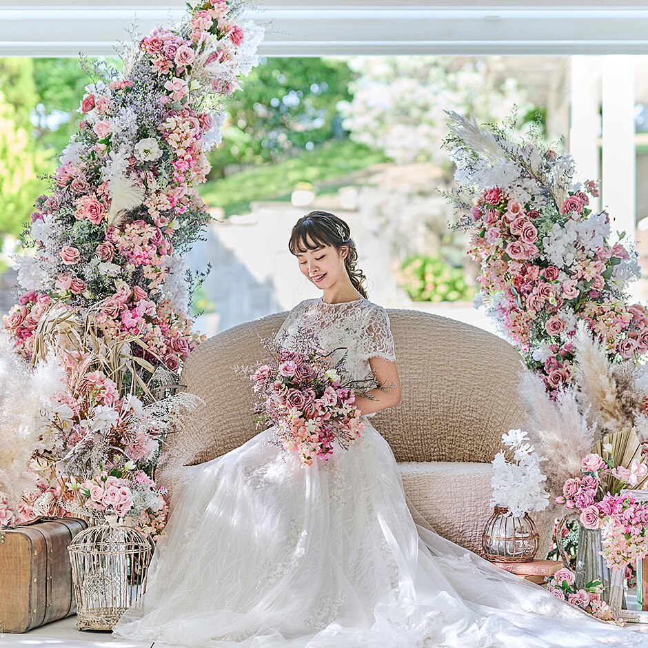 最旬アイテムや季節の装花を組み合わせたコーデ提案もおまかせを。ふたりの期待以上の空間をつくり上げる
