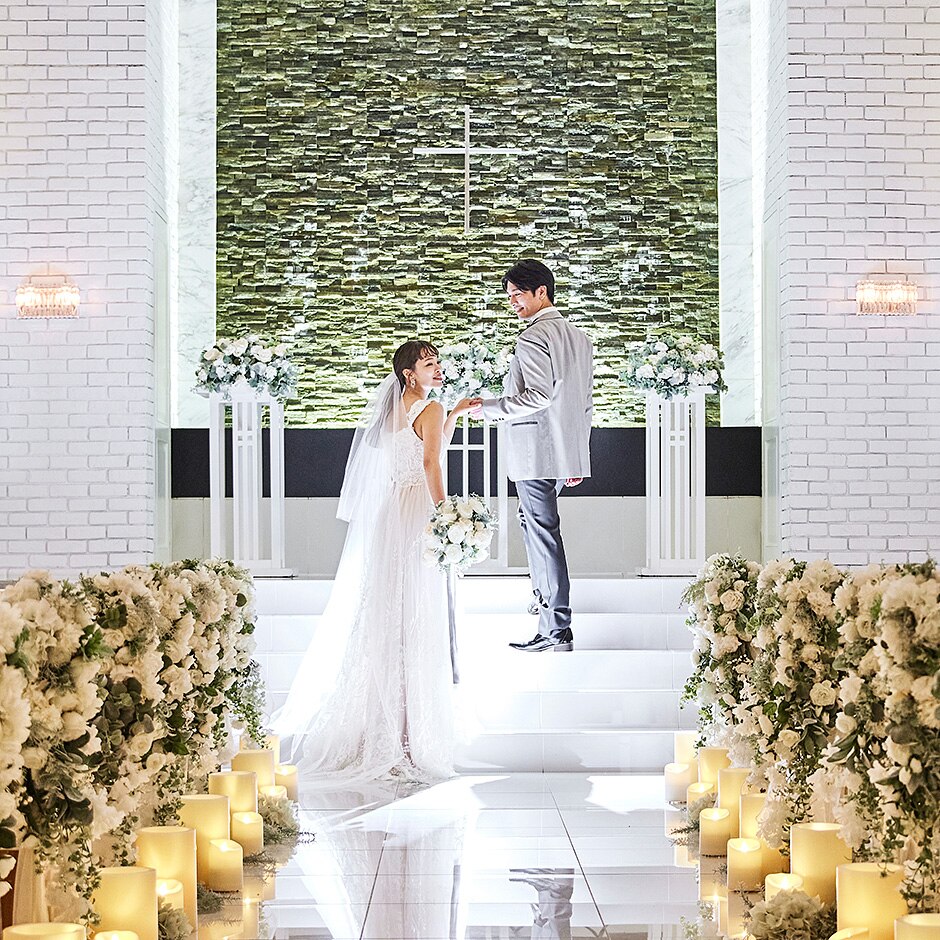 ウエディングドレスが映える白亜のチャペルで、一生の愛を誓う