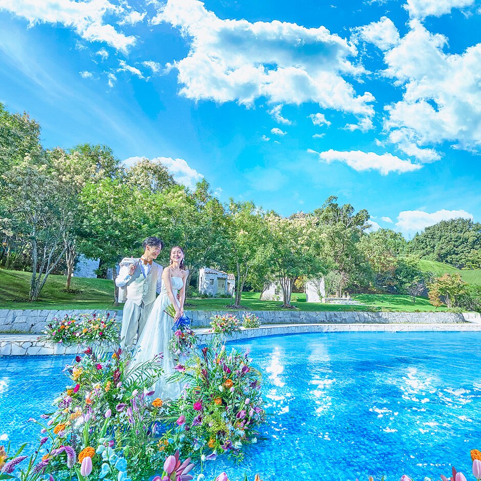 プールやガーデンなど福岡市内とは思えないほどのリゾート感!本物の自然に包まれる理想のウエディングを