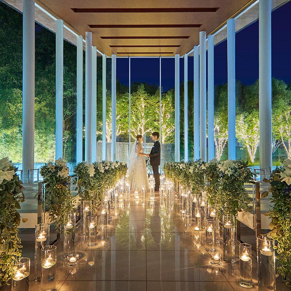 様々なセレモニースタイルに対応。ナイトウエディングなら、大人花嫁にぴったりの落ち着いた雰囲気に