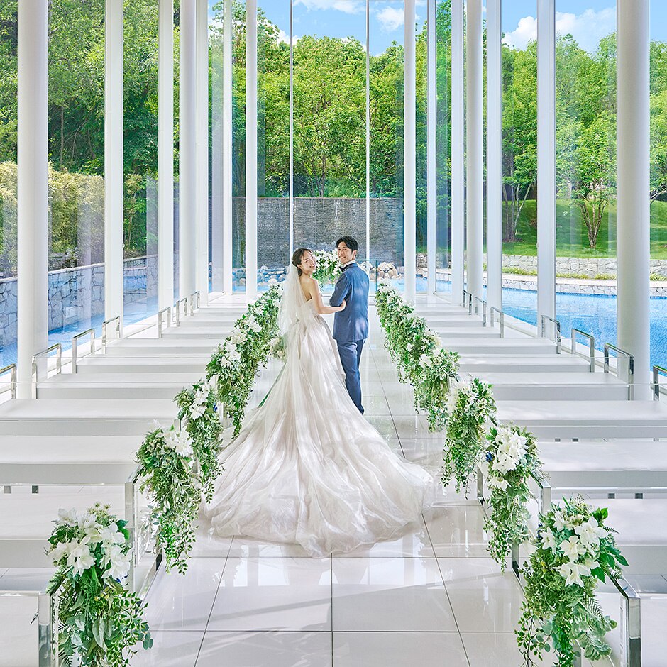 ウエディングドレスが映える白亜のチャペルで、一生の愛を誓う
