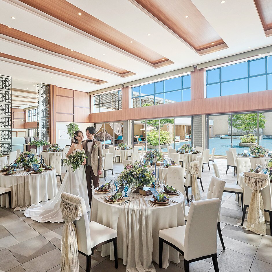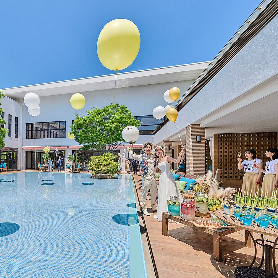 【人数・日程・予算が未定でも気軽に来館OK】選べる2つの教会と、プールやガーデン付の2つの会場を有する同館は、盛大な披露宴から親族中心の食事会まで、あらゆるスタイルに対応。話を聞くだけでも大歓迎!お得な特典やプランも多彩なので気軽に足を運ぼう。