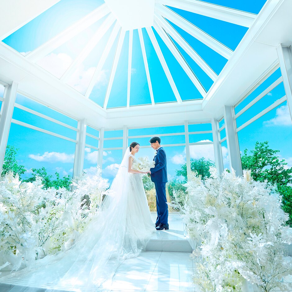 【人気のドレス2着優待特典などあり】★空と海に囲まれたウエディングで夢のひととき★ふたりの憧れが叶う天空チャペル体験&プール付き邸宅で人気演出体験!新作ドレス試着*豪華無料試食で主役気分♪