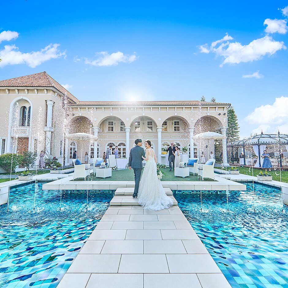 【人気のドレス2着優待特典などあり】★空と海に囲まれたウエディングで夢のひととき★ふたりの憧れが叶う天空チャペル体験&プール付き邸宅で人気演出体験!新作ドレス試着*豪華無料試食で主役気分♪