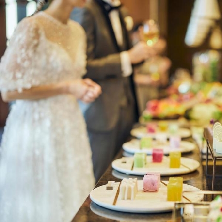 【ゲスト満足度8年連続1位を獲得】迎賓館ならではのおもてなし。控室で提供されるドリンクやピンチョスを試食。ガーデンで楽しむデザートブッフェ等の演出や、ゲストに喜ばれるギフトも豊富にラインナップ。