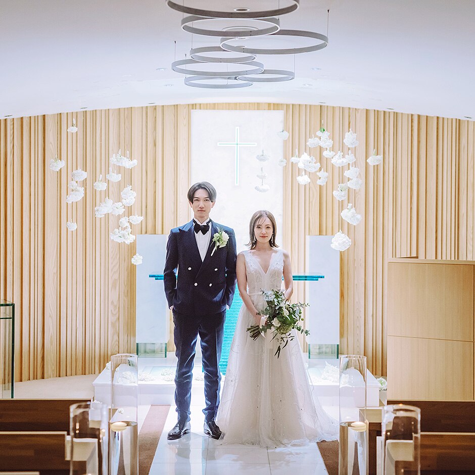 - 教会式 (館内)¥165,000、人前式 (館内)¥110,000・(日本庭園)¥132,000、神前式 (館内・日本庭園)¥132,000