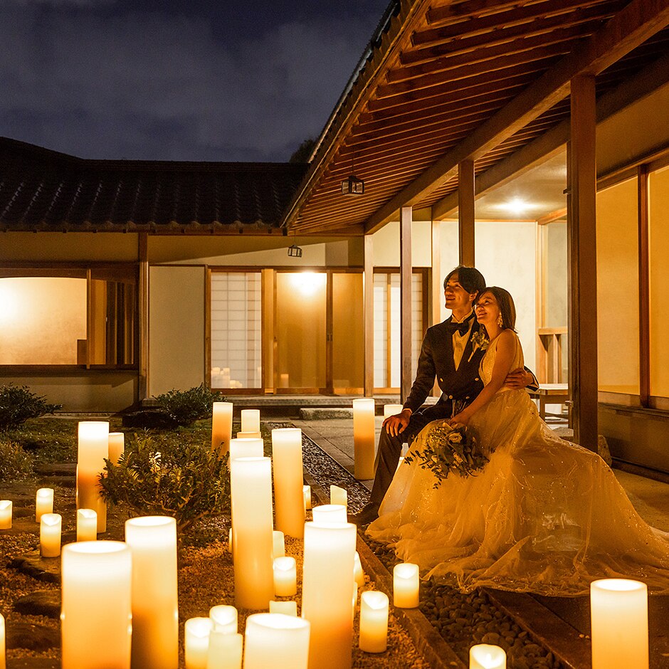 <大津駅から車で約10分>現代数寄屋建築をリノベートした貸切一軒家で、四季折々の風景と料理が彩る結婚式。近江懐石×フレンチのおもてなしは人気レストランを併設する同館ならでは。抽選で最大3万円のAmazonギフトカードがもらえる来館特典にも注目。