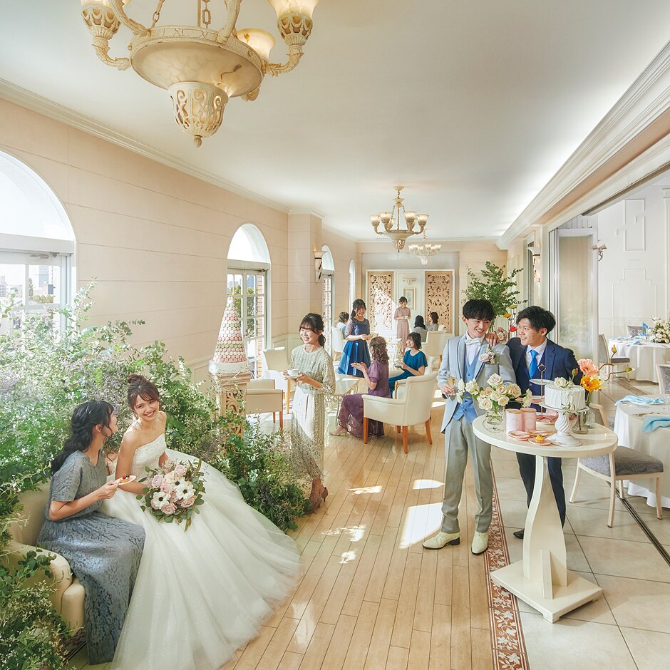 プリンセス気分を楽しめるお城の舞踏会をイメージした会場、多くの芸術家に愛された街並みを表現した会場、南フランスのカフェのようにゆったりと過ごせる会場など、多彩な空間からふたりの希望する空間を選べる