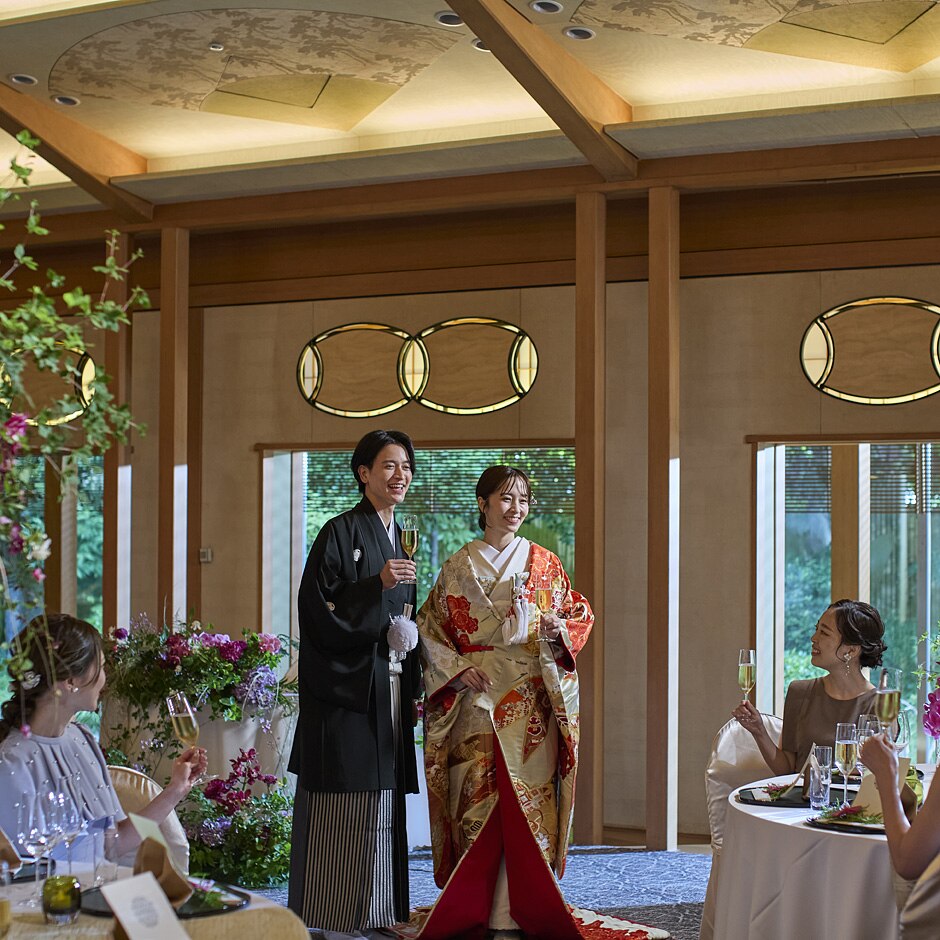 Rさま このたびはご結婚、誠におめでとうございます。 また数ある会場の中から有栖川清水をお選びいただき、心より御礼申し上げます。 【事前のお打ち合わせについて】 準備期間の中、スムーズに進んだとのお言葉を頂戴し、担当プランナーも大変喜んでおります。 またヘアメイクについても、ご希望に沿う形で当日を迎えていただけたとのこと、心から安心いたしました。 【当日について】 一棟貸切の空間で時間に追われることなく、ゆったりとお過ごしいただけたとのこと、本当に何よりでございます。 神前式は、参列された皆さまにとっても新鮮で記憶に残るひとときになったようで、大変嬉しく拝見いたしました。 【会場の雰囲気について】 「東京とは思えない静けさ」「自然な雰囲気が好き」とのお言葉、誠に光栄でございます。 竹藪のアプローチやお庭の景観など、趣のある空間づくりを大切にしておりますので、その魅力を感じ取っていただけたことがとても嬉しく存じます。 【スタッフ・サービスについて】 お料理の提供のスムーズさやスタッフの対応について、ゲストの皆さまからもお褒めのお声を頂戴したとのこと、大変嬉しく拝見いたしました。 会席料理の提供には細やかな連携が必要となりますが、当日のサービススタッフが「最高の一日」を支える一助となれたのであれば幸いです。 【お料理について】 ご試食の段階からこだわっていただいた「お料理」にご満足いただき、心より安堵しております。 料亭として一品ずつ丁寧に仕上げる会席料理を、特別な日にふさわしいと感じていただけたこと、料理長をはじめ調理スタッフ一同大変励みになっております。 【ご料金について】 お見積りから大きな変動がなかったとのご感想に加え、説明の丁寧さについてもご評価いただき誠にありがとうございます。 安心してご準備を進めていただけるよう、今後も明瞭なご案内に努めてまいります。 【ロケーションについて】 送迎バスをご活用いただき、スムーズにご案内できたとのことで安心いたしました。 改めまして、素敵なお写真と共に数々の温かいお言葉をお寄せいただき誠にありがとうございました。 おふたりの大切な一日を有栖川清水にお任せいただけましたこと、スタッフ一同心より嬉しく思っております。 おふたりの末永いお幸せを、心よりお祈り申し上げます。