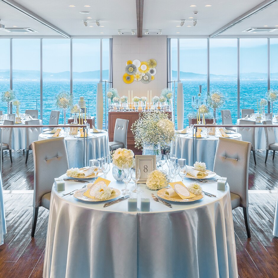 JR大分駅から車を走らせること10分、街の喧騒を少し離れると聞こえてくる波の音。充実の設備が揃う上、駅からのアクセスも抜群なので遠方からゲストを招くふたりも安心。大分の美しい景色をゲストにプレゼントしよう