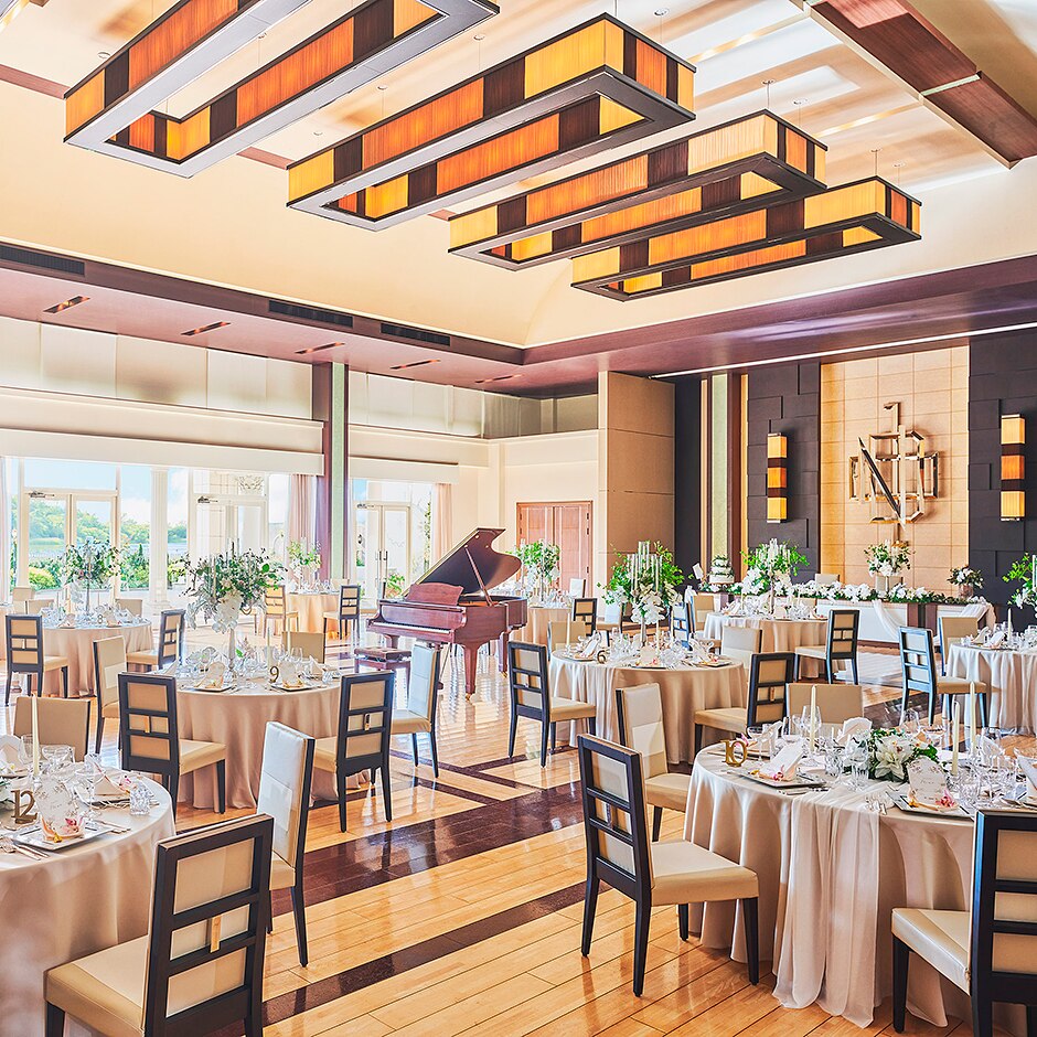 大切な人を招く披露宴は特別な時間。ふたりのアテンダント、ゲストへ料理を届けるサービススタッフ、シェフやバーテンダー、全スタッフが専属。他の結婚式と掛け持ちのないサービスで至高のひと時を演出してくれる