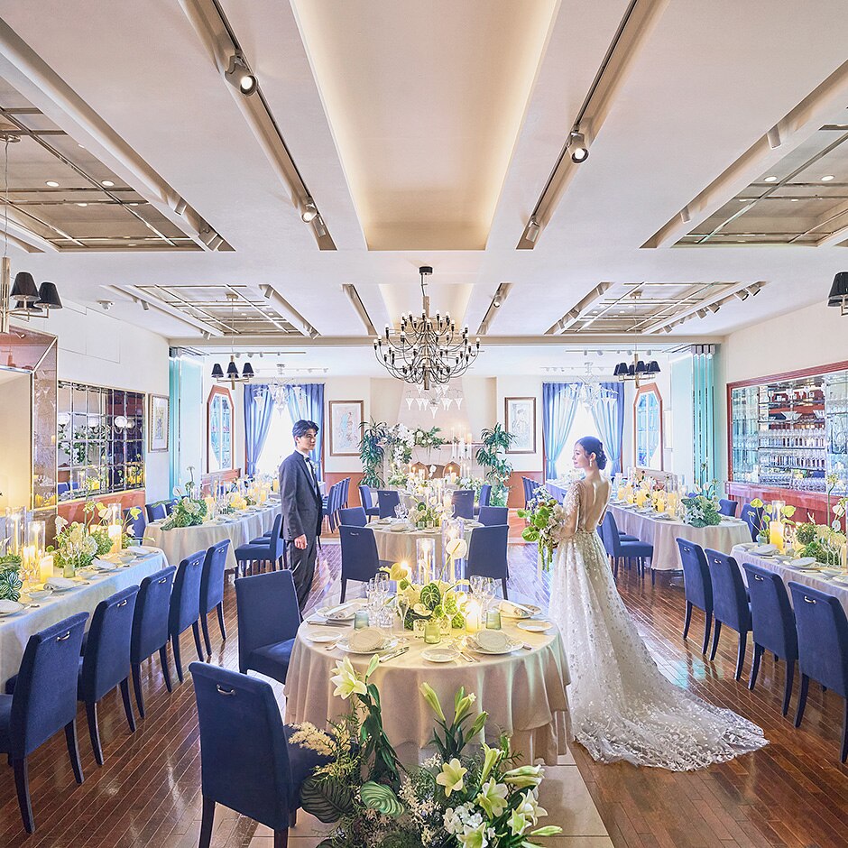 気品溢れる館内は、シャンデリア・グラス・絵画など質にこだわったアイテムが会場を華やかに彩る。ゲストとの丁度いい距離感が会話を楽しませてくれる
