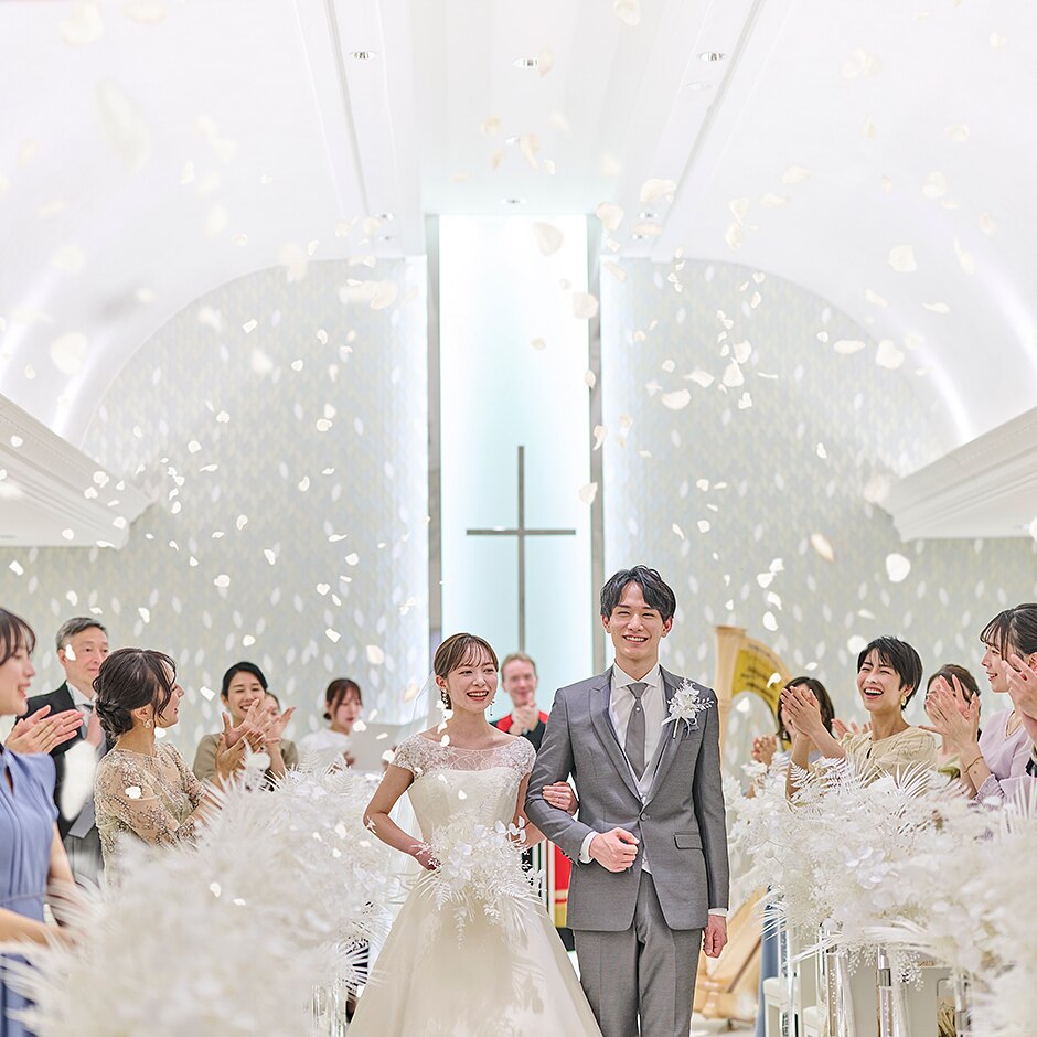 ゲストの温かい笑顔とフラワーシャワーのセレモニー
