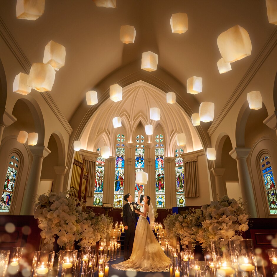 ステンドグラスの輝きに包まれながら、永遠の愛を誓うセレモニー