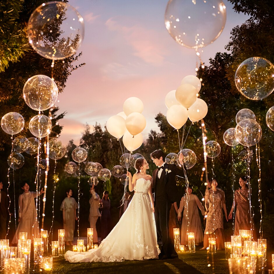 敷地を貸し切って花火やランタンバルーンなどの演出も自由自在♪トワイライトはロマンチックな雰囲気に -