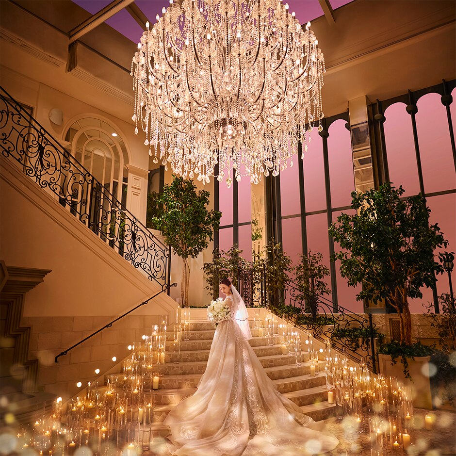 豪華なシャンデリアや美しい花々が作り出す上品でロマンチックな世界観 -