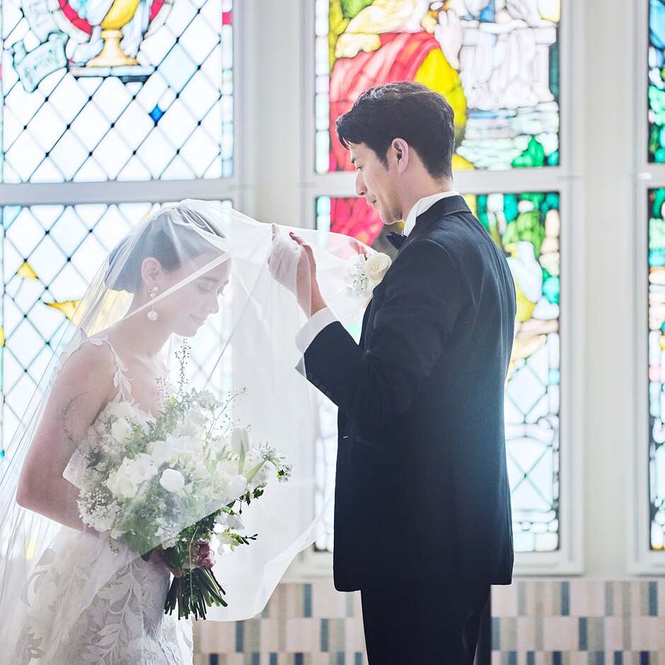140年の時を超えて見守るステンドグラスが、感動の誓いを祝福