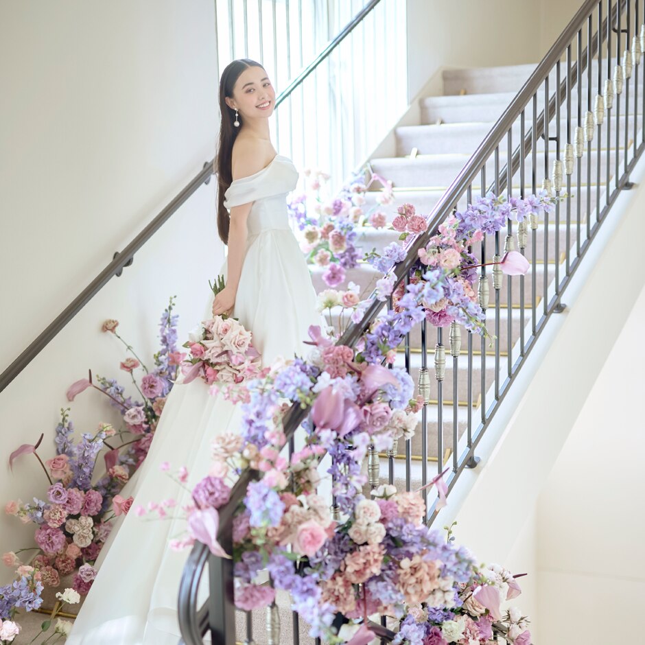 運命のドレスが一層映える大階段