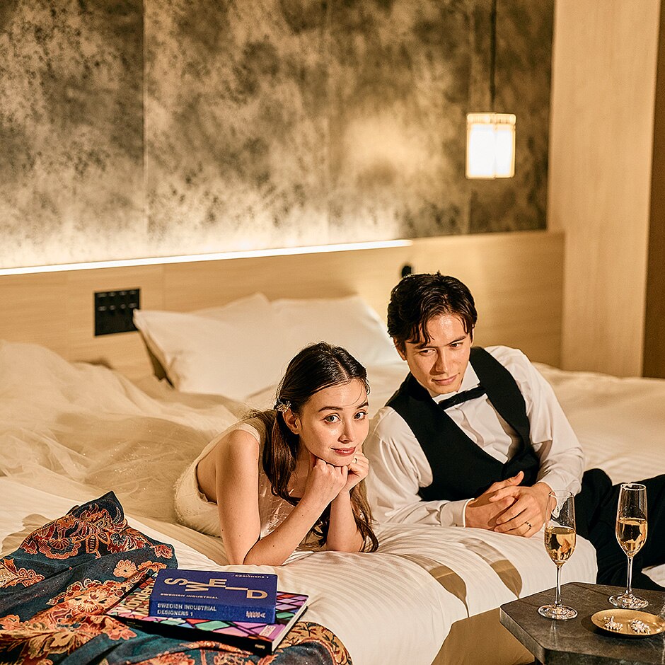結婚式の前日から翌日まで、24室だけの特別フロアで過ごす2泊3日。心を整え、愛しい人々と語らいながら、ホテルならではのきめ細かなサービスと寛ぎ空間を満喫。時間ごとに幸せの余韻を深く刻むステイウエディングを