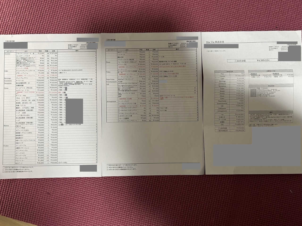 ※投稿された金額情報は、日取り、申込みのタイミングや会場の空き状況等によって異なるため、最終費用明細の項目や金額をもとにした、式場との価格交渉や追加サービス等の要望はご遠慮ください。