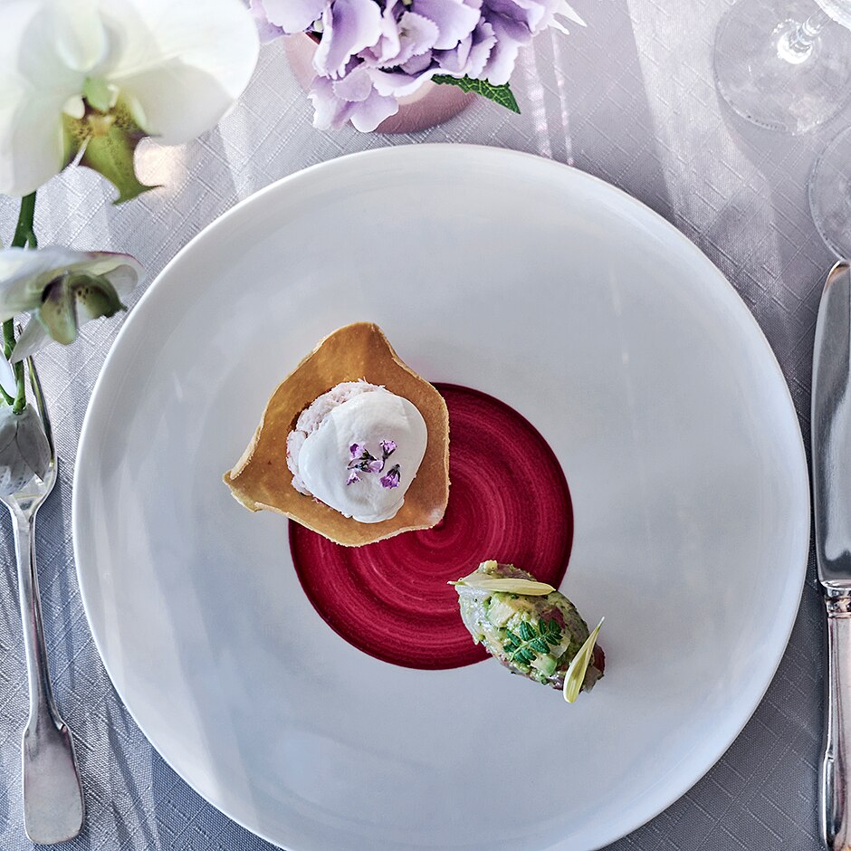 正統派の技法にアーティスティックなエッセンスを加え、素材の味をぞんぶんに活かした華やかなフランス料理