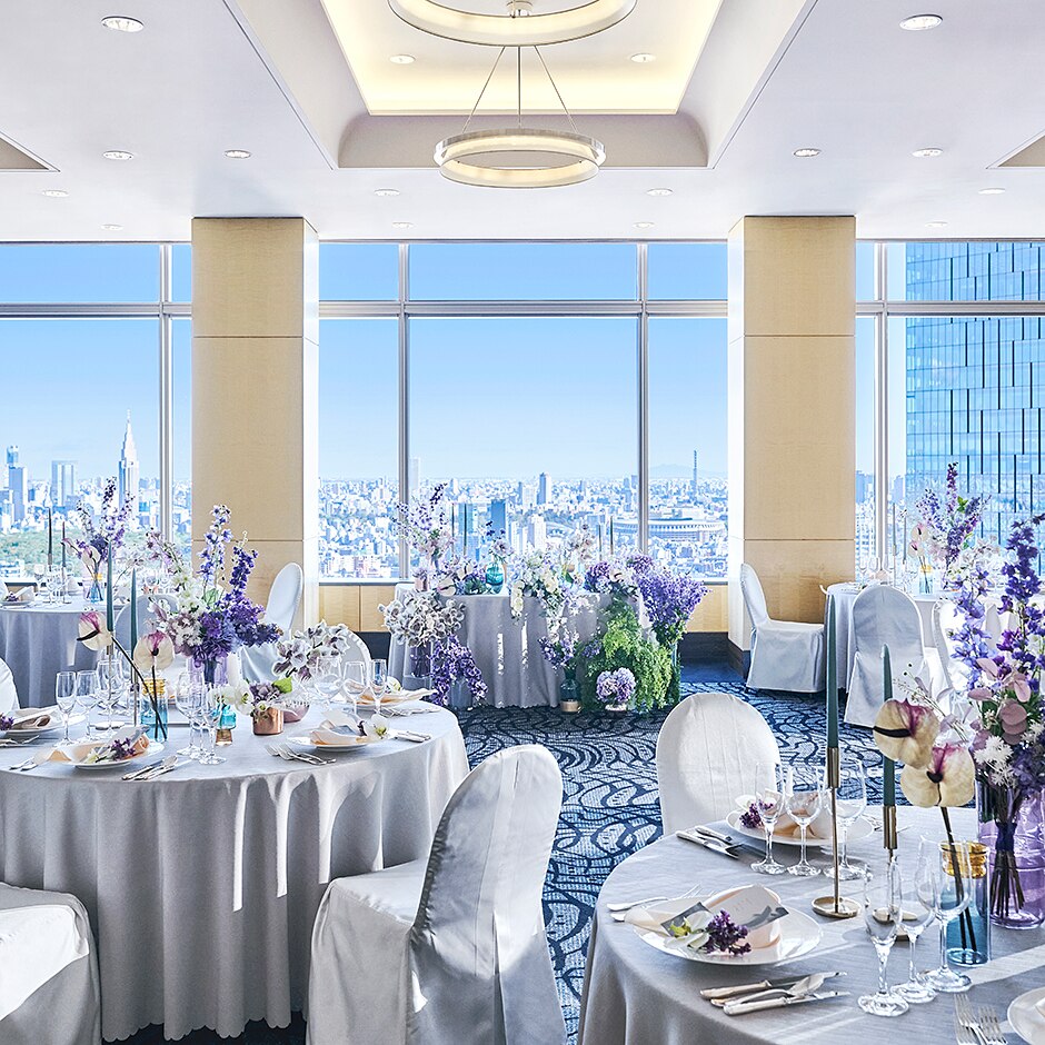 「Ceruleanは青空色」の意味。タワー最上部に位置する高層会場で天空のおもてなしを。この景色が非日常空間を素敵に演出