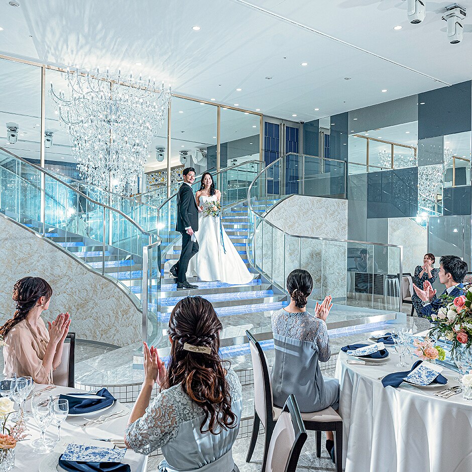 階段入場演出やプロジェクションマッピングなど、卒花嫁様の要望を詰めこんだ憧れの会場 -