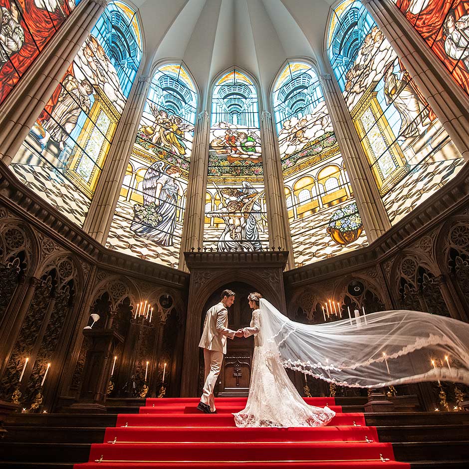 美しいステンドグラスチャペルと上質なおもてなし空間で叶う憧れの感動挙式想いを伝える大聖堂で記憶に残る感動の1日を