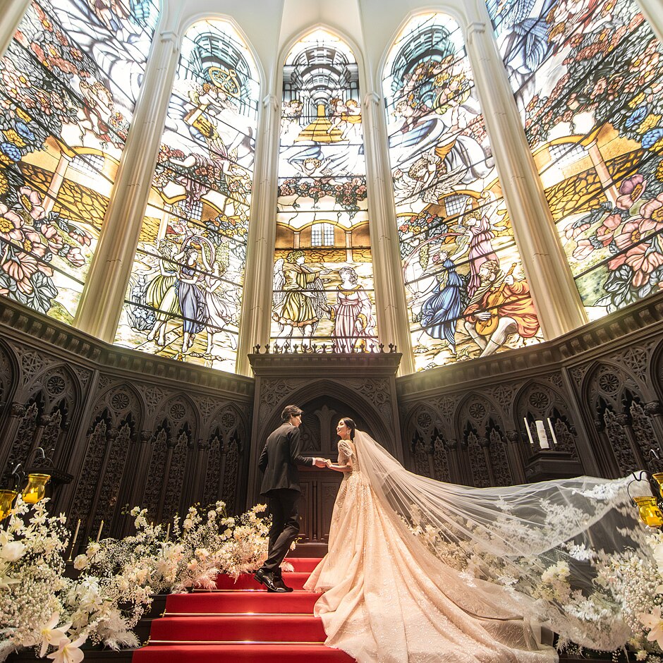 美しいステンドグラスチャペルと上質なおもてなし空間で叶う憧れの感動挙式想いを伝える大聖堂で記憶に残る感動の1日を