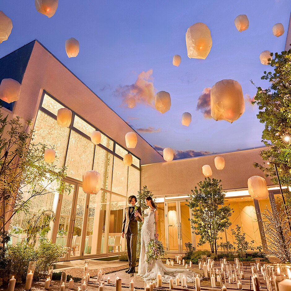 ナイトウエディングならではの神秘的な雰囲気で、新郎新婦とゲストが心に残る素敵な思い出を。