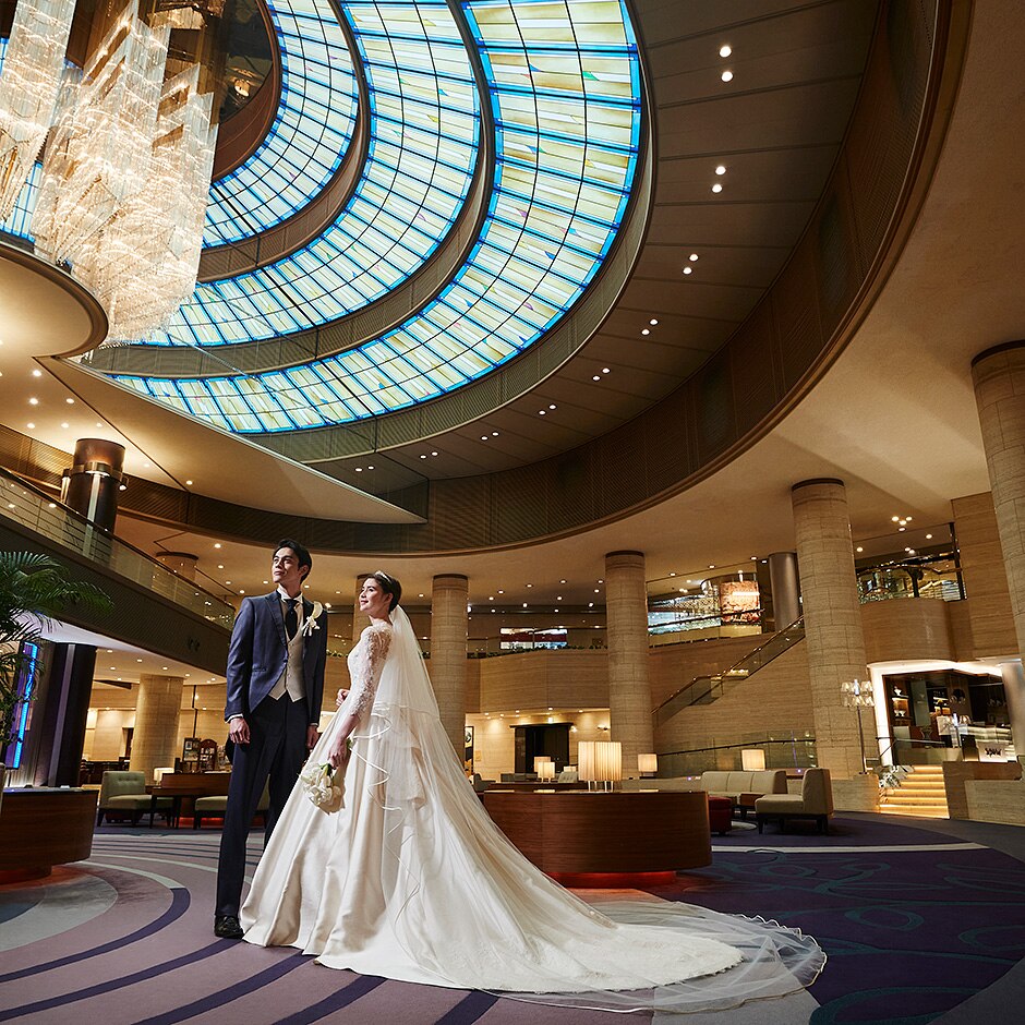 ホテルウエディングらしいエレガントな正統派のウエディングドレス@メインロビー